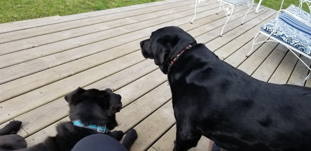 Ella was a rescue that I adopted at 4 months old, in October of 2011. Duncan was a dog that I started to “foster” in April of 2019, and adopted shortly after bringing him home. The vet estimated that he was about 4 years old. He integrated into our pack very quickly, and we were so happy that he joined us.